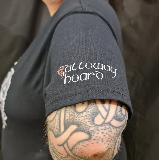 Ladies Black T- shirt - Viking Heart Red & Grey