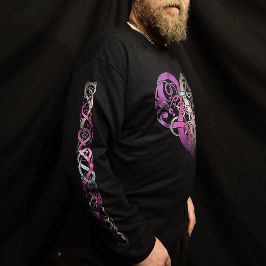 Viking Heart Purple & Grey Unisex Black Long Sleeve T-shirt