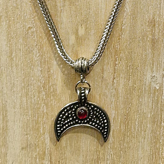 Lunular with Red Stone on Etruscan Chain