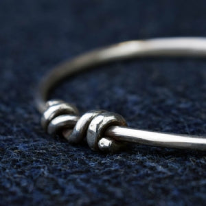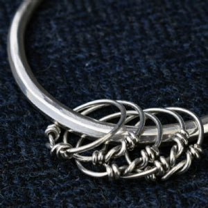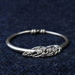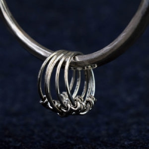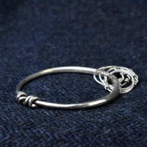 This silver arm ring is based on a Viking age piece located in the National Museum of Denmark. The smaller rings that hang on the bangle could have been used as currency as it would have been easy to cut off individual rings.
