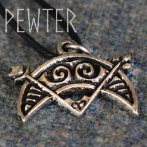A pewter version of this common Pictish symbol stone carving. The crescent could represent the moon, and it has been found carved on stones from the Isle of Syke to Aberdeenshire.