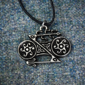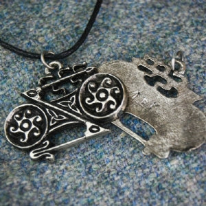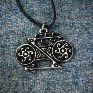 A commonly found Pictish symbol, this pretty design could possibly represent wheels or a broken spear. It may well have been a family emblem or a mark of an organisation.
