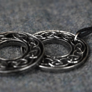 This pendant is based on the round discs from the Monymusk reliquary and considered to be a fine example of Pictish metal working. The Monymusk reliquary is also considered to have been the reliquary of St. Columba, the Brecbennoch, which was carried before the Scottish army at the battle of Bannockburn.