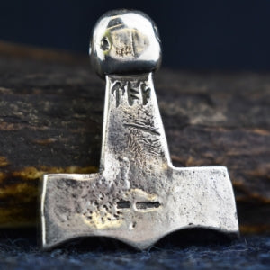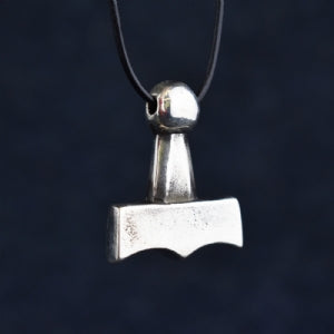 A solid Mjolnir/Thor's hammer replica from the Viking period that was found in Denmark, made from sterling silver. Thor's Hammers are worn by followers of the Norse god, Thor for protection. It is hand made in the United Kingdom and comes ready to wear with a length of black leather thong.