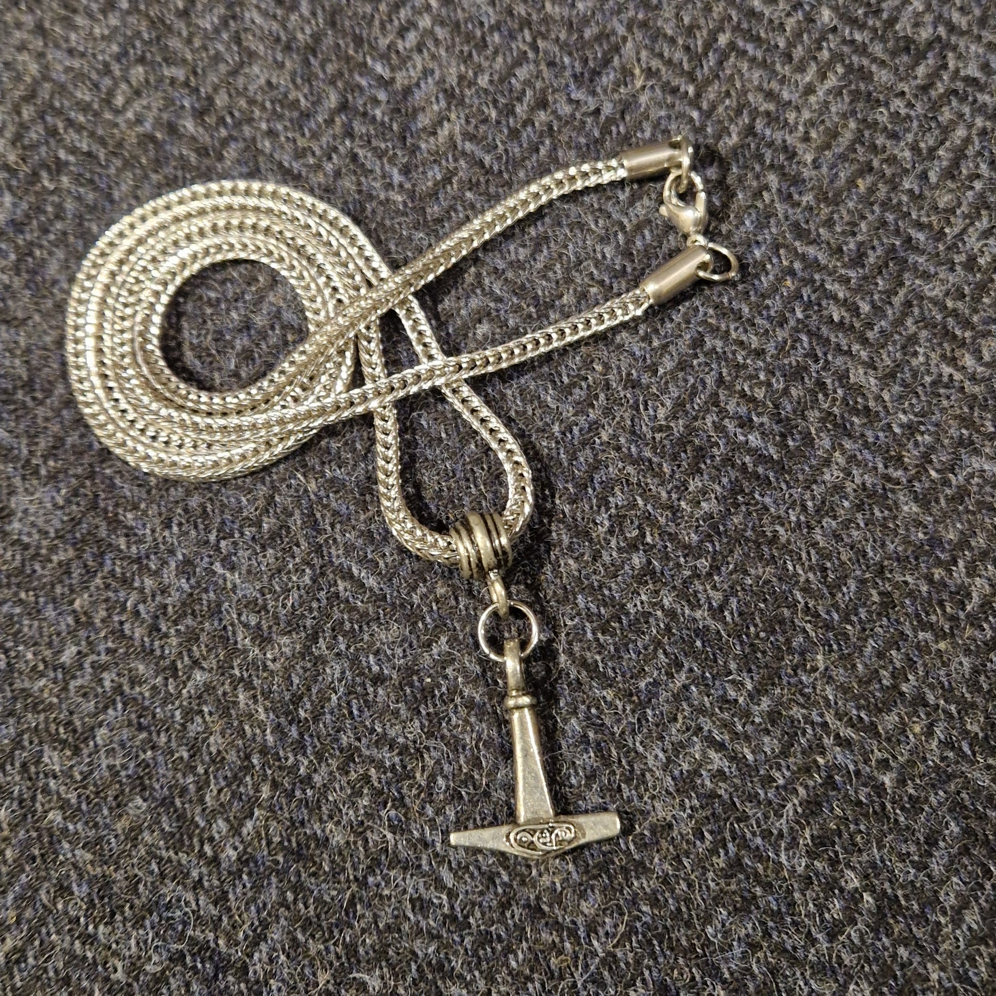 We have teamed up some of our smaller mjolnir pendants with a 60cm stainless steel etruscan (also known as a foxtail) chain. This super supple, 3mm thick chain is finished with stainless steel end caps, and closed with a stainless steel lobster clasp.