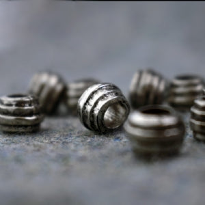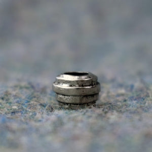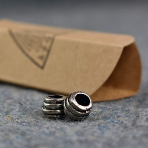 This pewter bead is based on the silver one that was used to fasten the neck of a Viking age tunic found at Skjolhamn in Norway. It has a hole that is 6mm so it can be used on beard hair braids, or as a clothing fastener, as the original was.