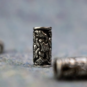 This bead reveals Odins ravens intertwined in an intricate knotwork and is cast in pewter. The bead has a hole size of 6mm and is perfect for beards, hair or fabric. It also fits on our ABLET014 leather bracelet with Sterling silver fittings.