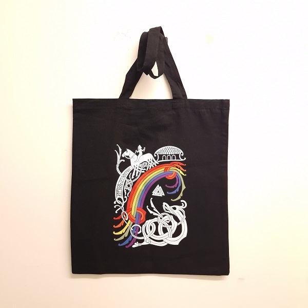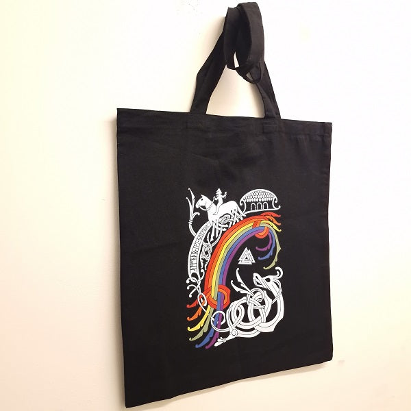 Our popular Bifrost design is now available on a black cotton tote bag. Shop in style!