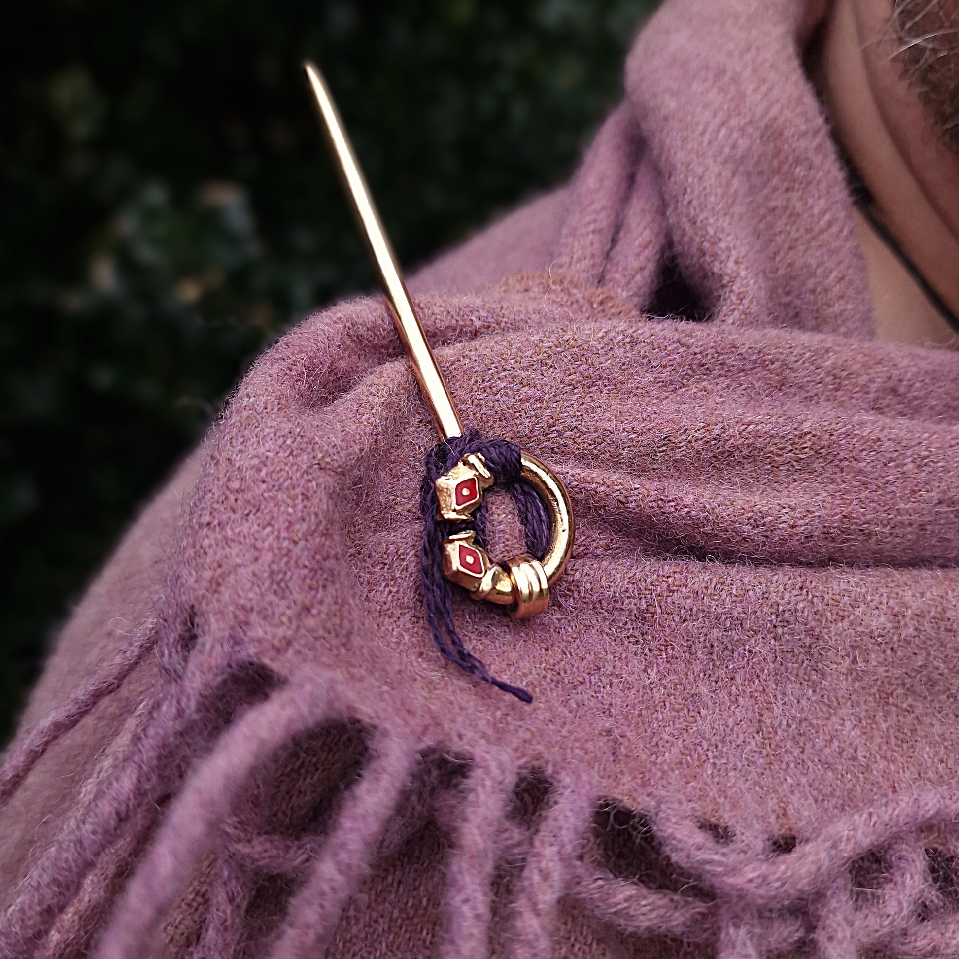This is the type of cloak fastening that uses a looped head to hold the ring, and is secured in place with a textile cord. This produces a brooch pin similar to that from the Viking-age grave at Balnakeil, in Durness, Sutherland.