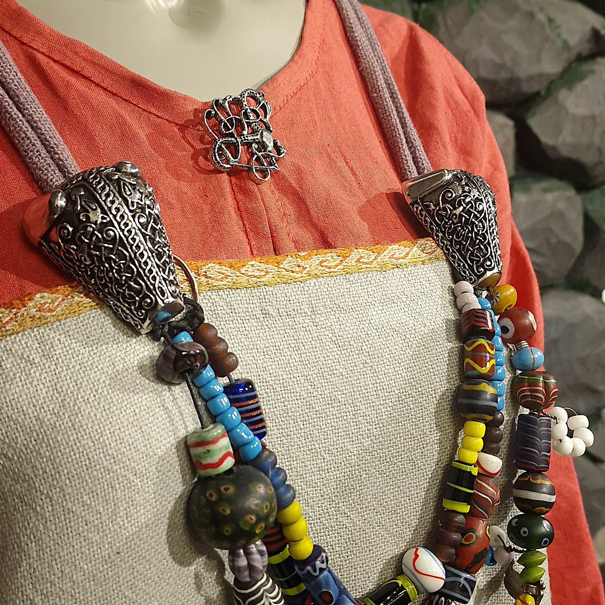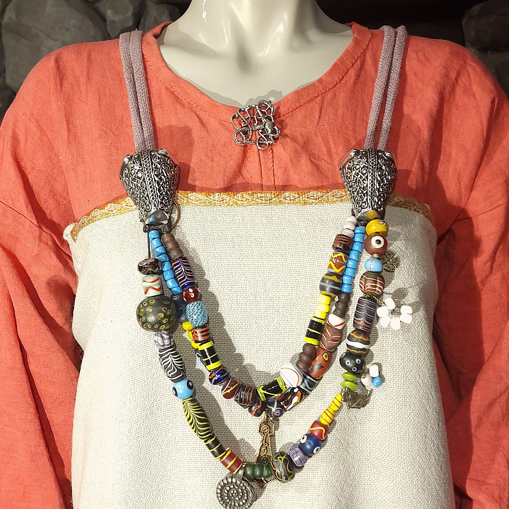 These brooches are cast in pewter, with integral lugs for the pin back. They are suitable for LARP or cosplay in a viking style, for ritual clothing or banquet dress. They could also be used for historical interpretation or theatre where the clothing style is more important than the materials used. Some re-enactment groups may allow pewter brooches of this style, please check with your AO before ordering.