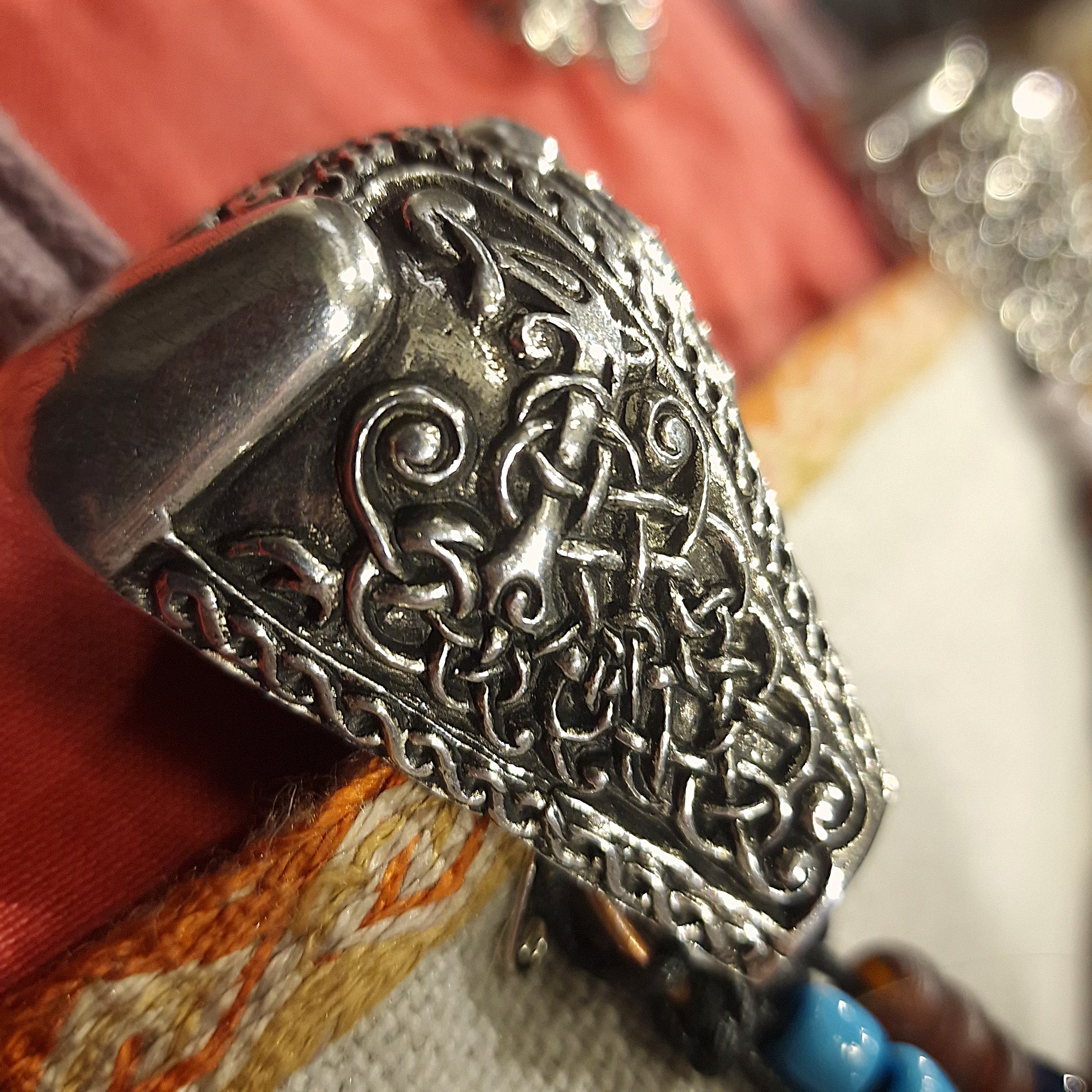 This is a pair of brooches based on an example from Gotland, which is now in the British Museum and is likely to date from the 11th century. They are designed to be used as a pair, for fastening a hangaroc, the outer dress worn by Norse women.