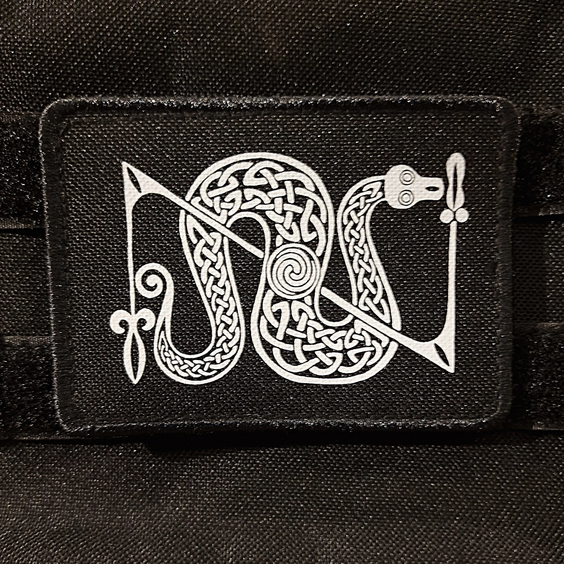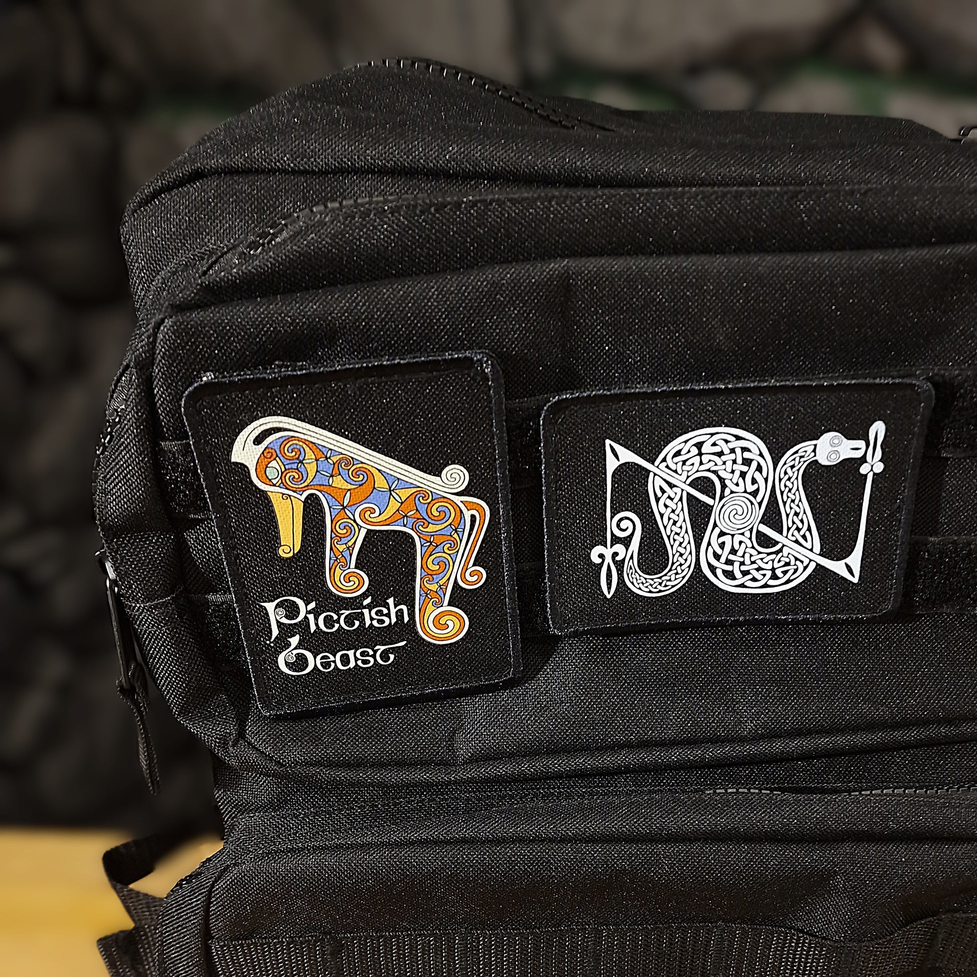 Our Pictish Snake & Z Rod patch has the popular motif from Pictish symbol stones on it.