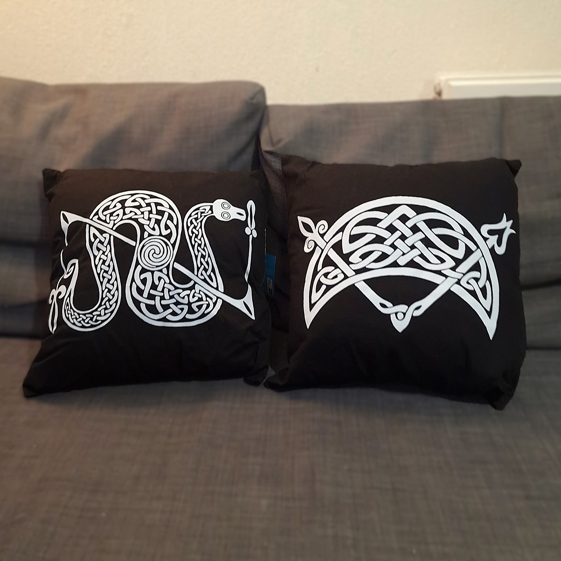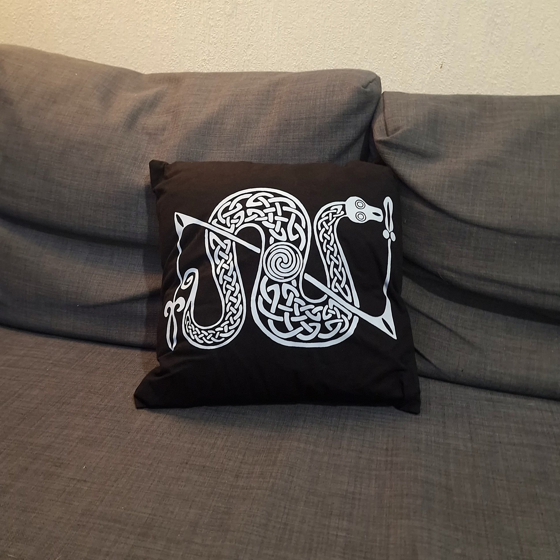 Our Snake & Z Rod cushion depicts the symbol that is often found on Pictish symbol stones across Scotland. Its original meaning is sadly not known.