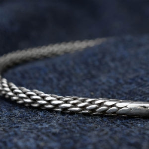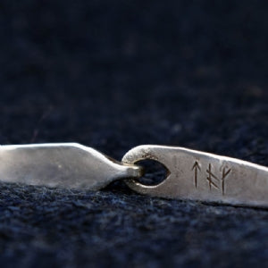 Our torque, or neck ring, is hand twisted by our head craftman. The piece is distinctly Viking due to its clasp and triangular dot motifs, which are similar to a number of archeological finds dated to the 10th and 11th Century.
