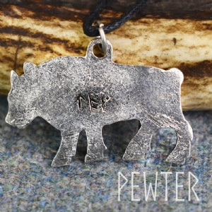 This pendant is taken from one of 6 surviving stones from over 30 mentioned in historical records. The bull symbol was thought to adorn the ramparts of the Pictish fort at Burghead on the Moray coast. The bull was an important symbol that represented strength and fertility.
