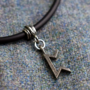 The pendants face measures 9mm x 23mm and weighs approximately 5g. Comes complete with rubber choker and spacer bead.